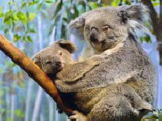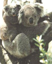 The koala's thick fur acts as a great insulator. In cold weather, a koala huddles in a ball with its back to the wind. On hot days, it stretches out along a branch. It may also seek shade on the ground or in non-eucalypt trees with dense foliage